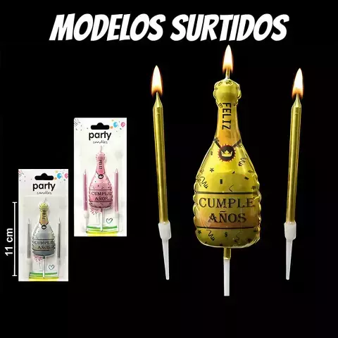 BLISTER VELA BOTELLA CUMPLEAÑOS SET 3 PIEZAS x1